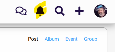 Stay updated with icons that alert you of new messages, notifications, and friend requests. The Bell Icon shows notifications, the Envelope icon shows messages, and the User Profile icon provides access to profile settings and logout.